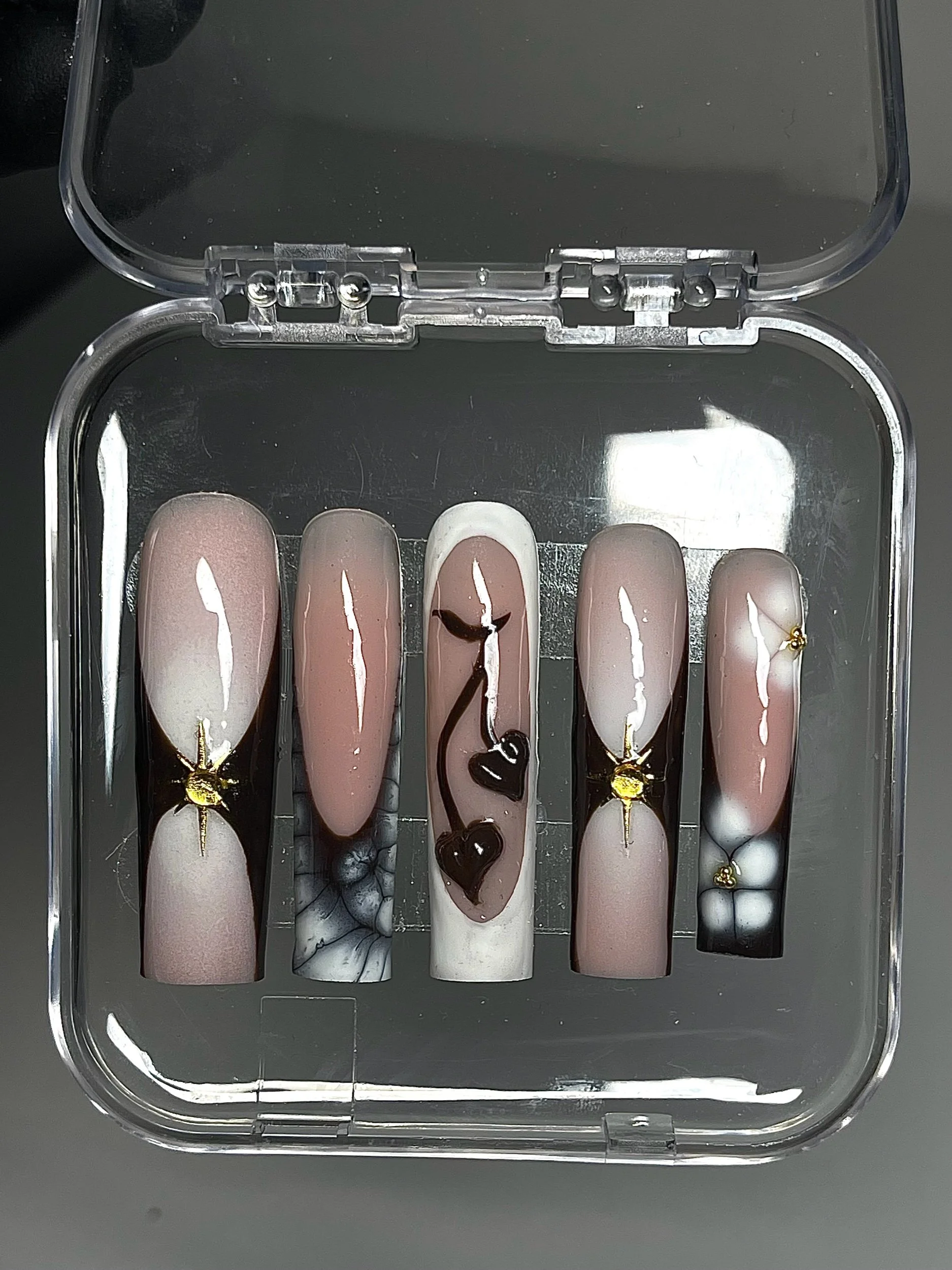 Design, taille, couleur, forme…Vos préférences définissent vos ongles. Décrivez moi votre pose de rêve et je me chargerai de la reproduire fidèlement :)